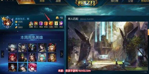1、玩家首先进入游戏来到主页面后,找到本周周免英雄上方的奖励选项。