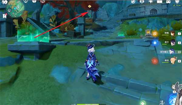 1、前往东侧遗迹,将残垣放在旁边底座上,开启密室。
