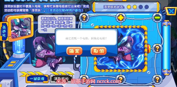 5、当你按照正确的顺序拆解完8个电极,且浮灵妖的状态值不为0时,即可完成活动并领取宠物。完成活动后,可获得1只宠物,一键完成次数不限。