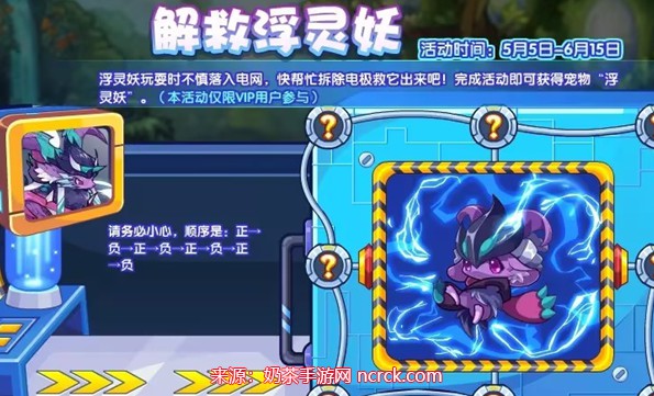 洛克王国解救浮灵妖怎么玩?这次的游戏活动中,浮灵妖意外掉进了电网中,需要玩家的帮助来解除电极拯救它,完成活动后玩家将会获得一只宠物,只要你是vip玩家那就可以随时参与,如果您还没有了解这个活动的具体内容,不妨继续阅读下面的洛克王国解救浮灵妖活动玩法解析,希望对大家有所帮助。