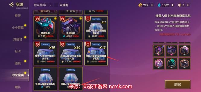 1、如果你打算花钱,那么你可以直接在商城购买关守入侵时空魔典礼包和礼盒,以快速集齐魔典。单个礼盒售价9.9元,包含一个礼盒和三个徽章。我们建议优先购买礼包,尊享礼包售价225元,包含45个徽章盒。