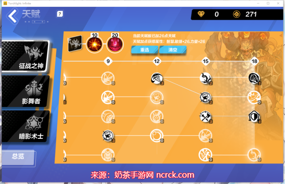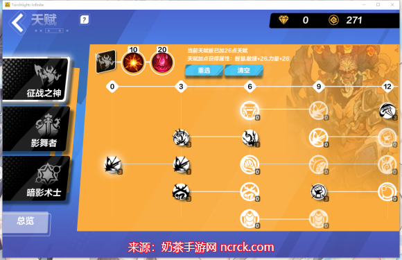 天赋大点:【野心】和【内外兼修】可以到26点就可以,会获得敏捷和力量各57点,敏捷越高出手的速度越快。