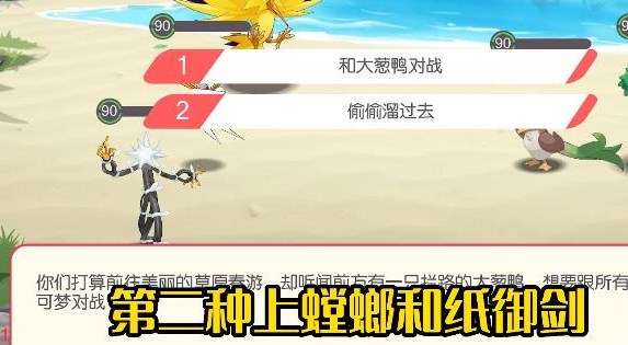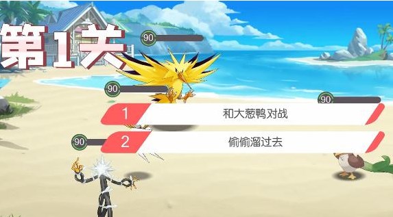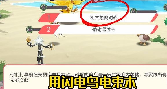 2、先选择第一种和大葱鸭对战,跟大葱鸭对战是需要使用闪电鸟,电束木和纸御剑打死大葱鸭即可。