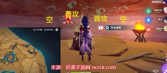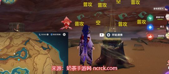 1、我们抵达第三处点位,根据乐谱敲打鼓面:基本攻击—空白—空白—基本攻击—空白—基本攻击—基本攻击—空白;