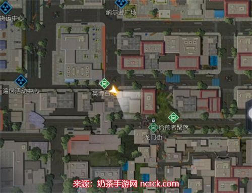 1、首先,您需要前往遗落之城的“英博百货”(详见图示)。