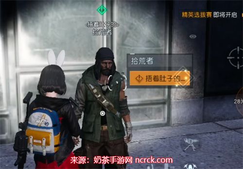 2、在百货店内,寻找一位饿着肚子的拾荒者,与他对话。