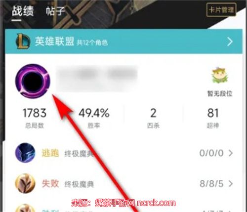 3、如果显示未找到该游戏,点击【历史战绩】即可查询到该用户的全部对局情况。