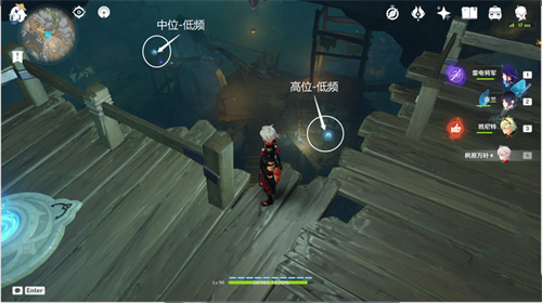传送任务指引位置的锚点,阅读桌上的信号指南,指示:高位-低频,中位-低频,低位-高频