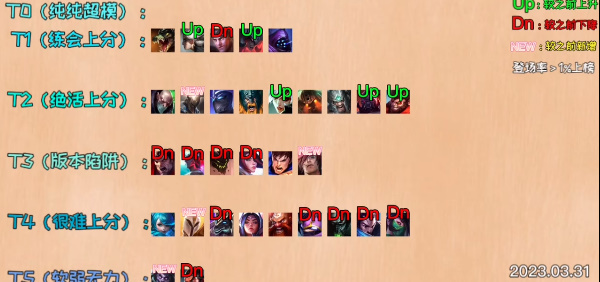 T3:潘森、酒桶、卡莎、蛮王、剑豪、猴子、泰坦、男枪、刀妹、皇子、杰斯、狼人、阿卡丽;