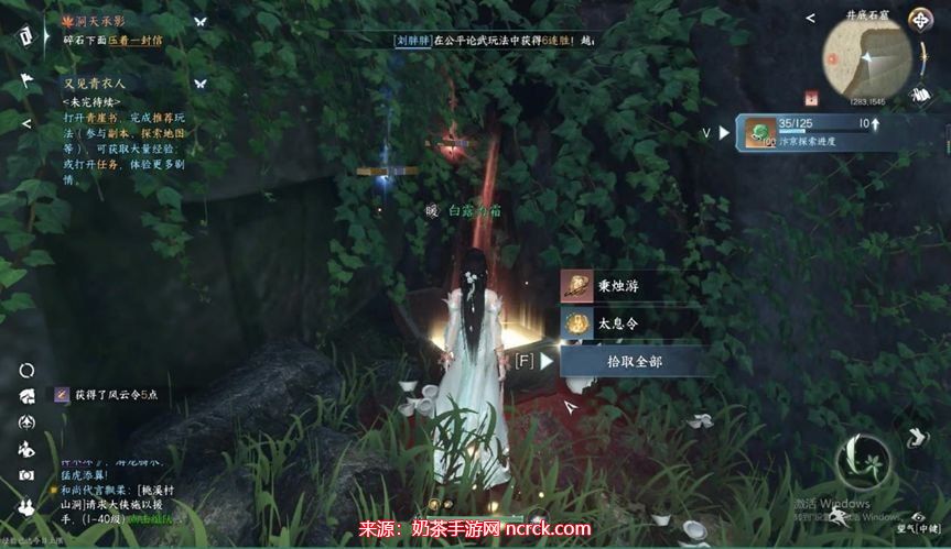 爬上悬崖(1269,1558),按F交互,用镜子把光引到石台上
