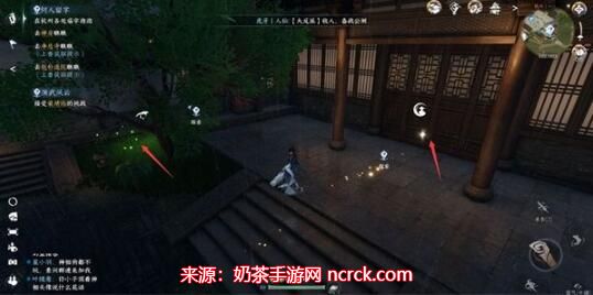 第一个位置是灵隐寺,位于坐标位置(745, 1318)附近。在灵隐寺使用探索动作上香,这将触发剧情。按照NPC的指引,前往附近的禅房进行查看。一旦进入禅房,与树下的萤火虫互动。接下来,按照下-左-右-上-下的顺序依次坐在蒲团上,这将解开机关并打开宝箱。