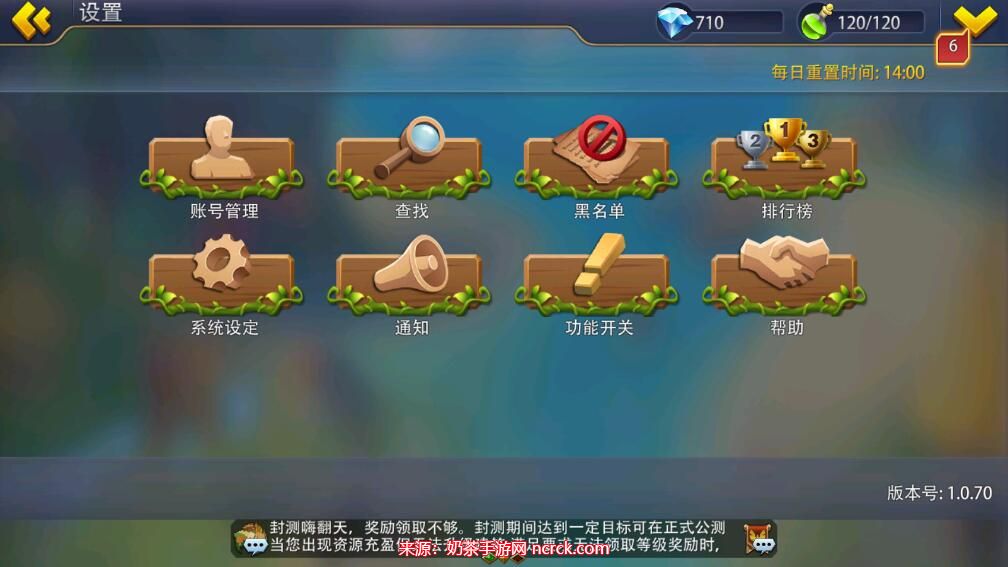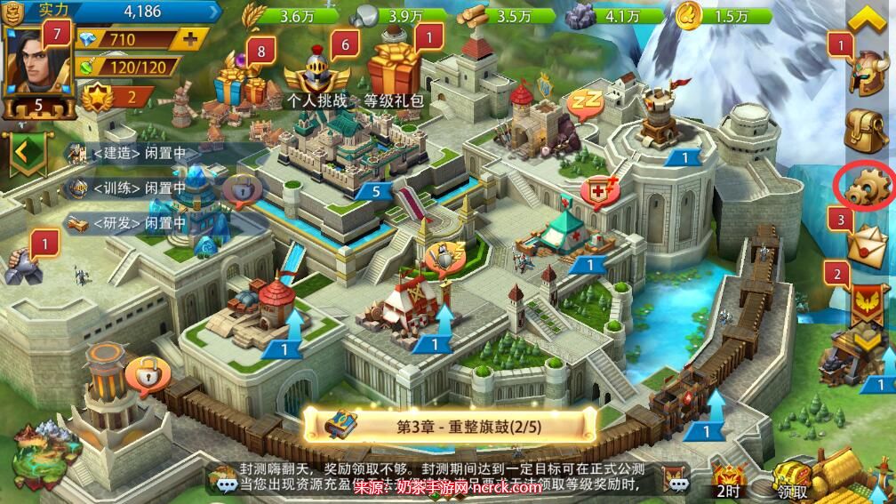 1、首先,在《英雄之冠手游》的主界面,点击右侧的设置图标。