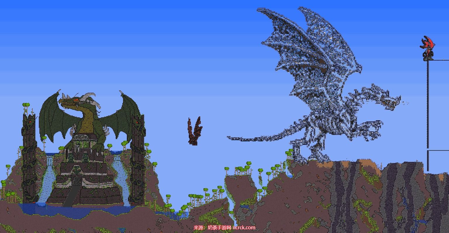 NPC 的支援:在战斗场地附近为树妖和护士NPC建造房屋。树妖可以施放树妖祝福增益,增加防御力,并提供类似荆棘药水的效果。护士可以即时治疗和消除减益效果,但需要花费一些钱币。