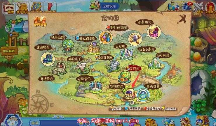 在宠物园中,您需要使用小地图导航功能前往宠物农场。点击小地图中的宠物农场标志,即可进入这片宽阔的农场区域。