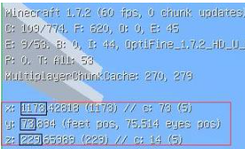在游戏界面中要传送的地方按F3,在游戏的左上角查看传送所在地方的x、y、z坐标。