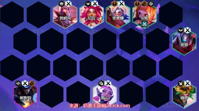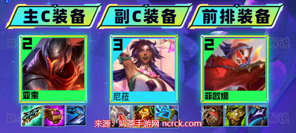 4阶段: 4-1/4-2阶段大搜3星亚索>菲奥娜,亚索3星就可以拉7人口,顺便拿一下尼莅这个英雄, 如果有2个2星尼蒞,那么7人口可以继续上一个尼蒞增加前排坦度。当然7人口最好就是补充一个莫甘娜在后排,主要的就是打一手控制。
