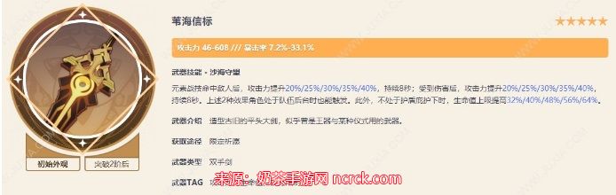 苇海信标是为迪希雅量身定做的武器,完美适配她的玩法和机制。无论是站场还是担任后台,苇海信标都能发挥出色的作用。您甚至可以将迪希雅的时之沙换成生命值,以便更好地利用武器效果。