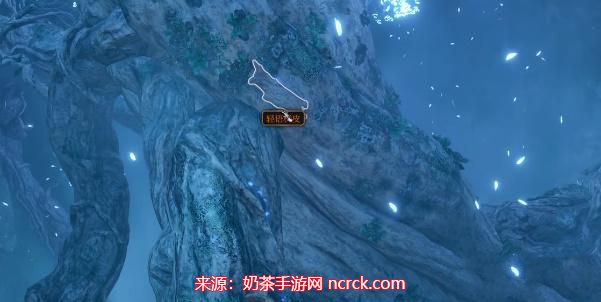 通过清理轻语树花后,继续沿着通道,来到道路的终点。在这里,玩家将能够从轻语树身上获取所需的道具——【轻语树皮】