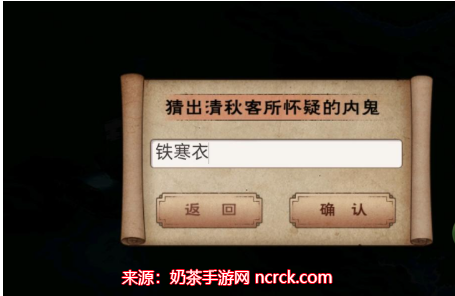 5、战斗后清秋客出现,击杀方姓商人后会问你叛徒是谁,此处填写铁寒衣/左使均可,获得500贡献。