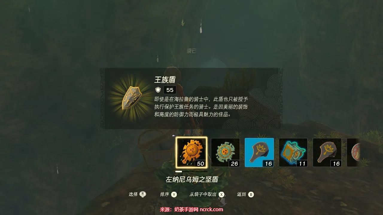 岩石上有宝箱,开启可获得“王族盾”。