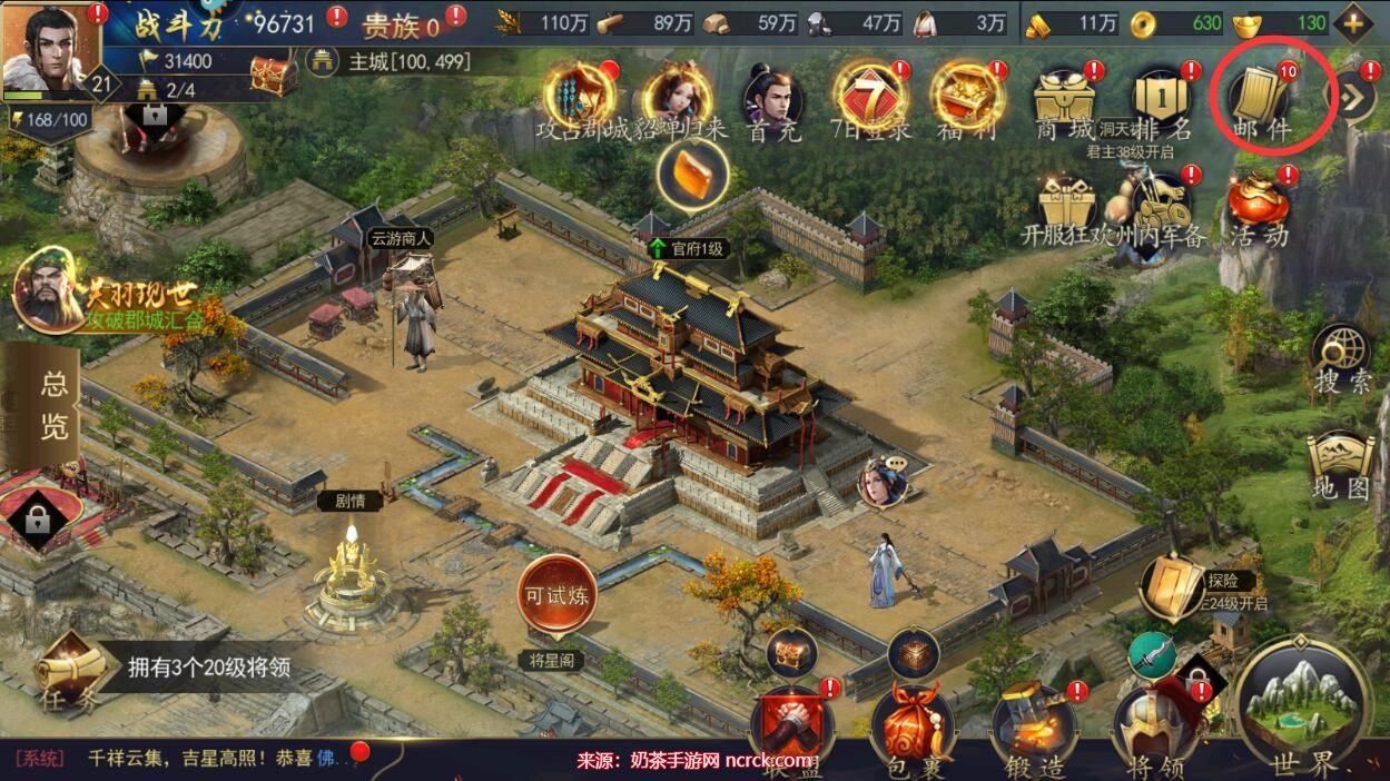 5、确认兑换后回到主界面点击右上角的邮件图标