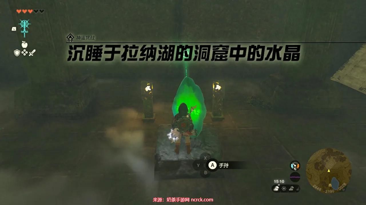 进入洞窟一直往里走,可以找到触发前置任务的水晶,接到任务“沉睡于拉纳湖的洞窟中的水晶”。
