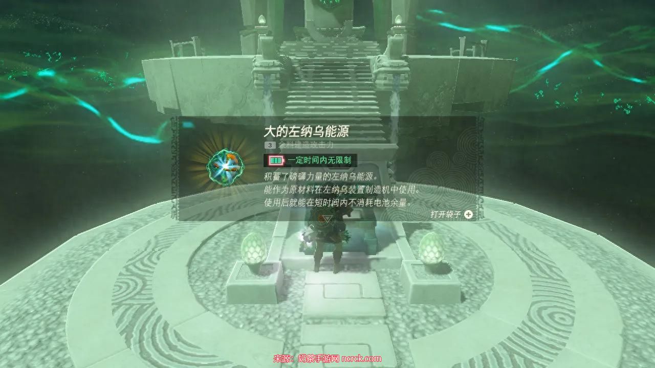 将水晶献祭于神庙前即可开启神庙。外部解锁神庙,进入直接开宝箱,获得“大的左纳尼乌姆能源”。