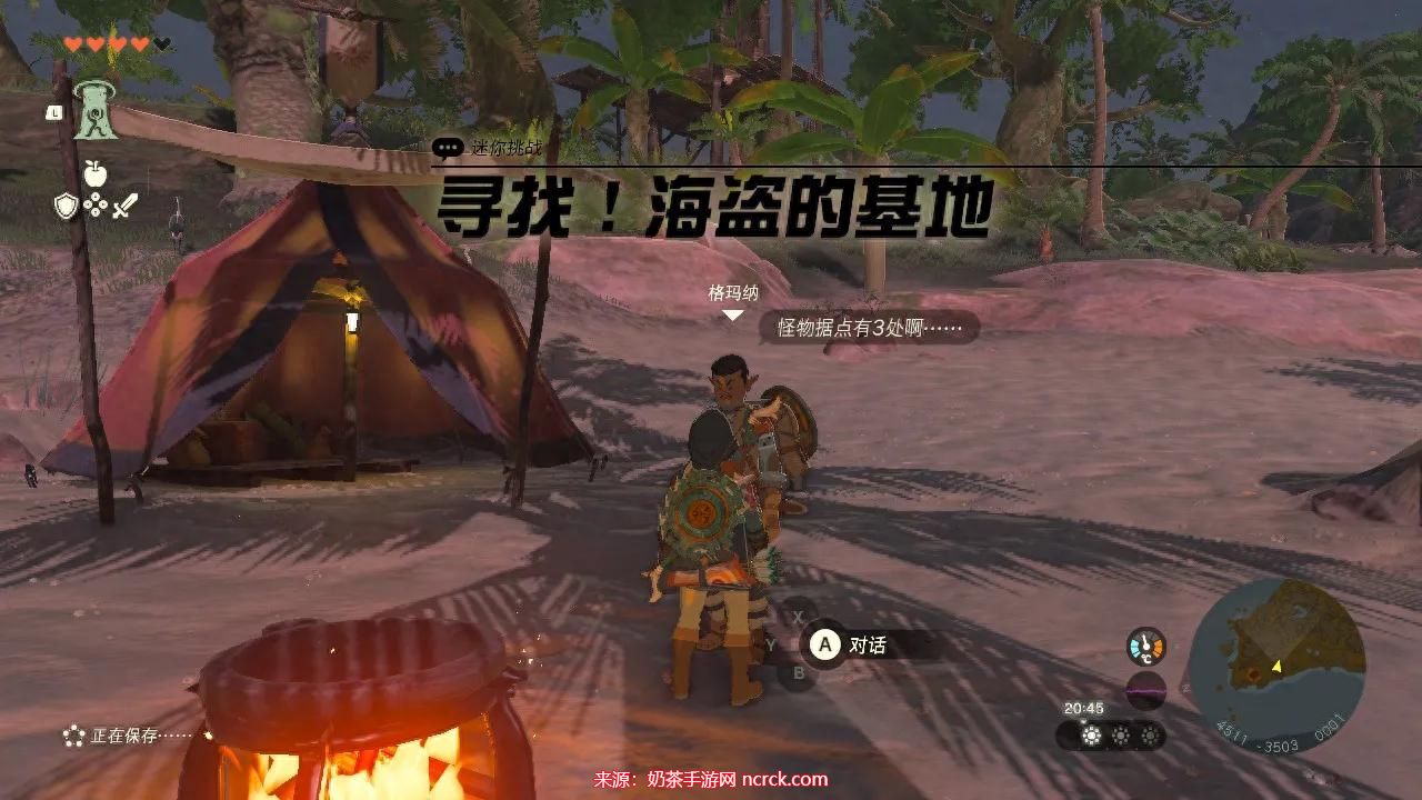 到达岛上找NPC接任务“寻找!海盗的基地”,任务需要清除三个据点的海盗。