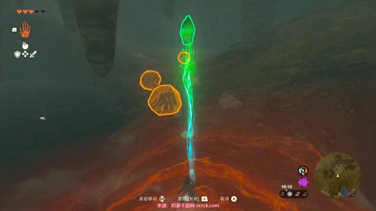 究极手抓取水晶,往光线所指的方向走。路上注意躲避大石块。