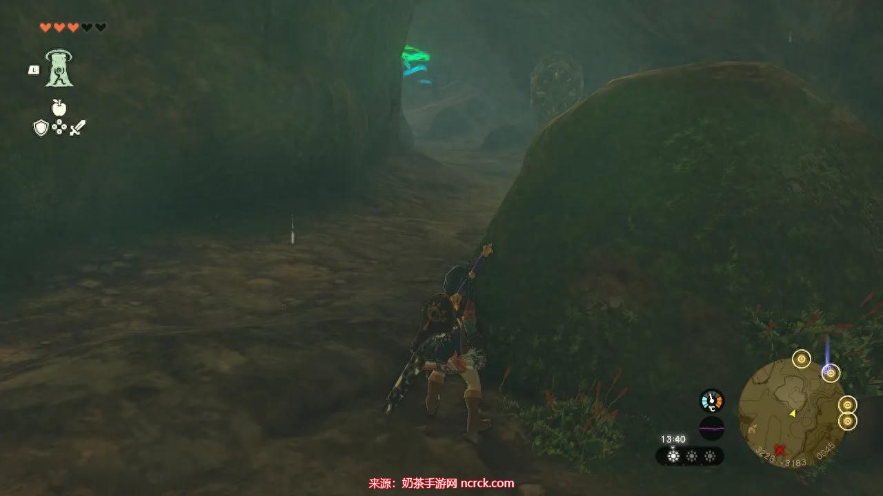 进入洞窟一直往里,找到这样形状的一块岩石。