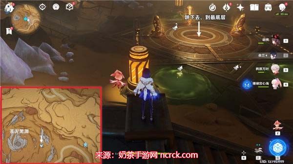 1、来到下图所示传送点处,跳下电梯,一直到最底层。