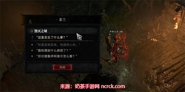 1、首先玩家需要与游戏中的关键NPC菲兰展开对话。这不仅为玩家开启了毁灭之域的任务,更为后续的探索做好了铺垫。