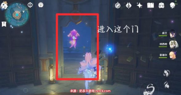3、之后点击进入中间的塔内,然后点击进入,进入之后向右转即可看见一个门,此时需进入;