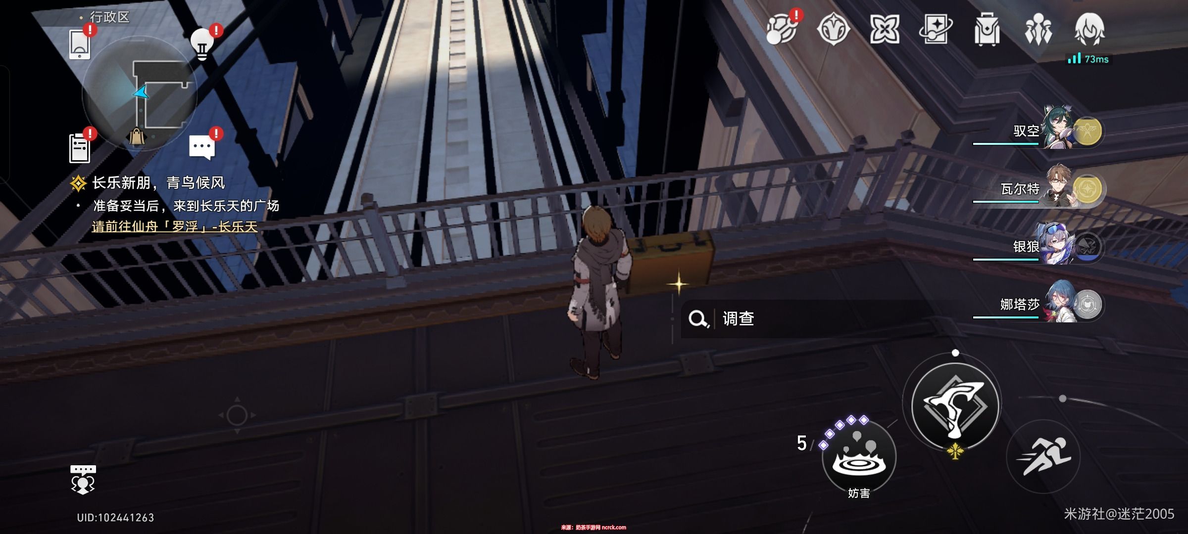 1、首先先来到行政区的一层,到达之后找到栏杆处带有光点的手提箱;