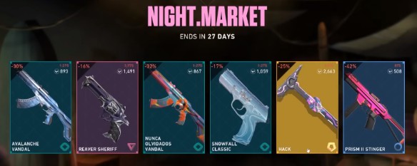 1、夜市在每个赛季末会上线,玩家可以随机获得六把武器或刀皮肤的购买权