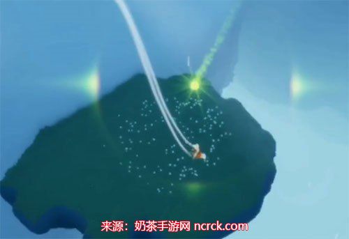 4、当玩家飞到小岛后,就能看见下图所示的绿色的光圈,这个绿色圈圈就是地之灵,一次没找到就多刷几次。
