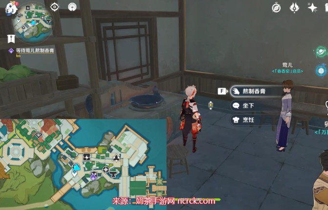 3、之后在去往和成台合成一个薄荷精油,然后去往万民堂交互熬制香膏。
