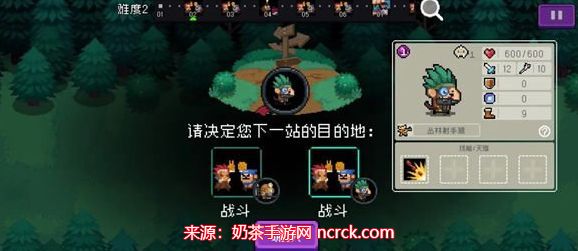 战场上有两个敌人队伍供你选择。仔细查看敌人的属性和技能,选择最有利于你的对手。