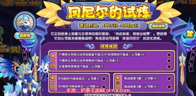 每天玩家有5次挑战机会。无论是选择5回合还是10回合挑战,三天内即可完成任务。达到100点的认可度,玩家将解锁永恒冈尼尔的超进化资格。