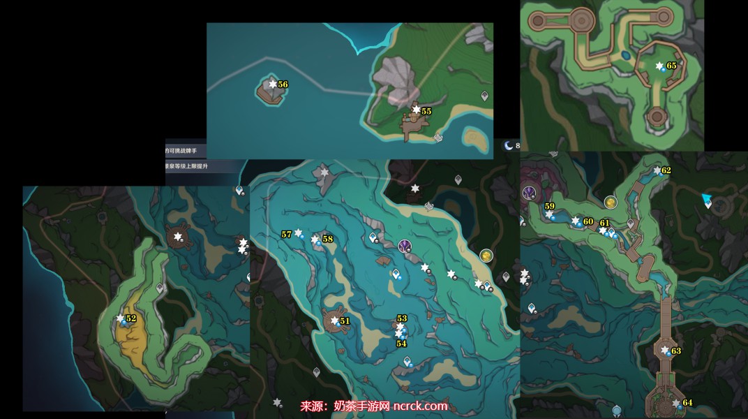这15个水神瞳分布在了5个区域,玩家可以打开地图,对照着区域板块进行区分,确定位置之后就开始进行收集。