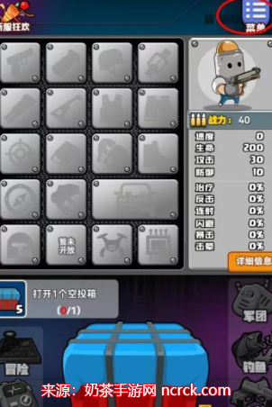 1、点击进入到游戏以下界面,再点击右上角的菜单。
