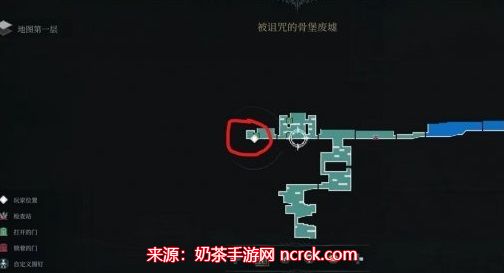 1.玩家来到被诅咒的骨堡废墟中下图玩家所在位置。