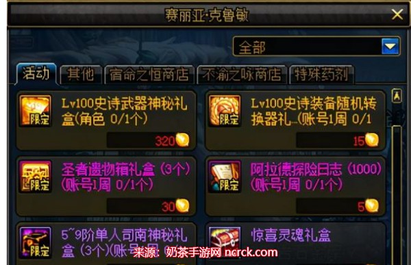 DNF圣人金币可以在赛丽亚商店交换,320个可以交换史诗武器的随机礼盒。除了工作服、武器和希洛克装备,15个可以交换史诗装备的随机转换器可以用100级史诗代替垃圾史诗。30个可以交换圣人的遗物箱。