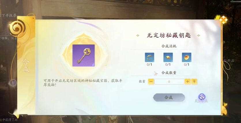 射雕手游中有一个无定坊密藏钥匙许多小伙伴不是很清楚在哪里,其实我们只需要收集三个线索后,来到物品合成,就可以合成这把钥匙了,下面就为大家带来详细的无定...